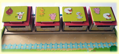 Vier schützende Ställe stehen am Rand der Wiese, und auf jedem Stall liegt ein Plättchen, das zwei oder drei Tiere zeigt. Genau diese Tiere müssen in diesen Stall - nicht mehr und nicht weniger. Sollte das nämlich der Fall sein, haben alle verloren, auch wenn es nur bei einem Stall passiert.