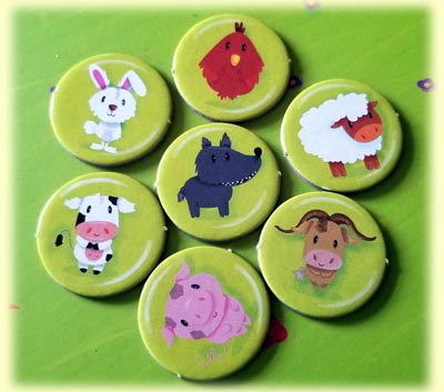 Verdeckte Plättchen auf der Wiese beherbergen natürlich die gesuchten Tiere ... und den Wolf. Wird dieser aufgedeckt, marschiert die Wolfsfigur ein Feld weiter Richtung Ställe, wird danach aber wieder verdeckt auf die Wiese gelegt. Es sind also alle angehalten, sich die Position der Wolfsplättchen gut zu merken. Erreicht er die Ställe, haben alle verloren. Aufgedeckte Tiere wandern in einen Stall - vielleicht, wenn man sich sicher ist, dass das Tier noch gebraucht wird. Ansonsten bleiben sie offen vor den Ställen liegen. Das Spielende können die Kinder selbst einläuten, wenn sie der Meinung sind, dass alle Ställe genau die Tiere haben, die gebraucht werden. Dann werden alle Häuschen hochgehoben und nachgeschaut ... und dann gejubelt oder eben nicht.