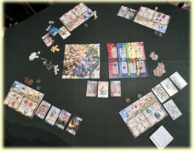 Das soll generell zu den Aktionen genügen. Anstatt sie hier einzeln ganz genau zu betrachten, ist es viel interessanter, den pfiffigen Spielablauf und die besonderen Spielmechanismen von Mytikas vorzustellen.