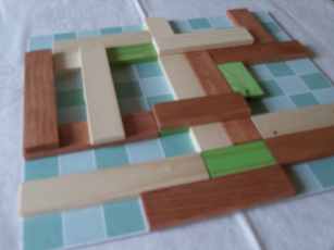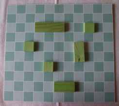 ![]() ![]() Dann legen die Spieler abwechselnd ein Steg ihrer Farbe gemäß den Regeln auf das Spielbrett. Stege dürfen nur senkrecht oder waagerecht in den Reihen bzw. Spalten des Spielbrettes liegen. Es dürfen auch Brücken gebaut werden, wobei ein Steg immer nur in einer Ebene liegen darf, und neue Stege jeweils nur ein Feld eines in der Ebene darunter liegenden Steges berühren dürfen. |