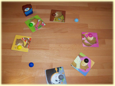 Landet der Bär auf der Nasenbärenkarte, darf man keine Karte ablegen, stattdessen jedoch die Nasenbärenkarte auf einer anderen Nase platzieren. Die Kinder verstehen den Sinn dieser Karte nicht – und mir fiel auch keine sinnvolle Erklärung dazu ein. Außerdem kommt mit dieser Karte – neben dem Würfelglück – ein weiterer Glücksfaktor ins Spiel, der nicht unbedingt hätte sein müssen.