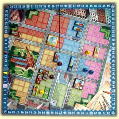 Des Weiteren will ebenfalls immer gut überlegt sein, ob man sofort nach dem Kauf eines Grundstücks ein kleines Gebäude errichtet oder ob man auf mehrere zusammenhängende Parzellen spart, um darauf später ein größeres Hochhaus zu errichten, das natürlich auch mehr Punkte bringt. Dabei darf man aber nie vergessen, dass man lediglich vier Arbeiter besitzt, um Grundstücksbesitz zu markieren.