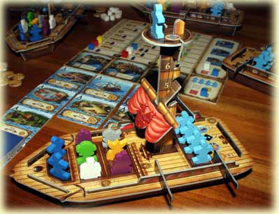 Außergewöhnlich schön ist das Spielmaterial! Es macht richtig Spaß, mit den dreidimensionalen Schiffsmodellen zu spielen: Segel versetzen, Kanonen, Matrosen, Waren und Gefangene in die Steckplätze stecken. Das weckt so richtig das Kind im Mann ;o)