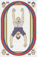 Jeder Spieler erhält 6 Karten (in der neuesten Fassung sind es nur noch 5 Karten). Die restlichen Karten werden als Zugstapel in die Tischmitte gelegt und die erste Karte aufgedeckt. Vom Startspieler beginnend geht es nun reihum. Um eine Karte ablegen zu können muss man auf der Hand eine Karte haben, die entweder die gleiche Farbe oder das gleiche Symbol wie die offen ausliegende Karte enthält. Dies ist meist nicht all zu schwer, denn es gibt nur 3 verschiedene Farben und 8 verschiedene Symbole. Dies allein berechtigt jedoch noch nicht zum Ablegen einer Karte.