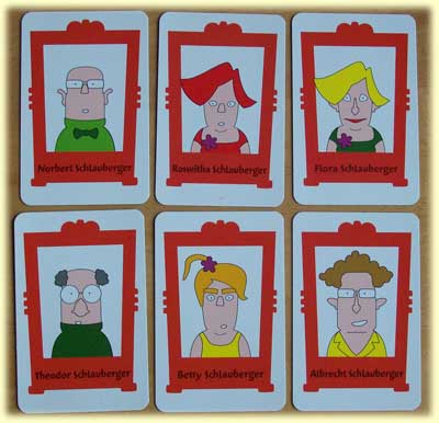 Inspirationsquelle für der Kreativität sind die Porträts der Familien Bollerberg, Kanteck, Schicklich & Co. 36 Mitglieder präsentieren sich auf den Spielkarten – mit unterschiedlichen Gesichtern, Frisuren und Oberbekleidungen. Lockenpracht oder Glatze, langer oder kurzer Nase, Schnauzer oder Vollbart, eckigem oder rundem Kinn, Zylinder oder Hut: Bei allen Karten muss man auf die Details achten.