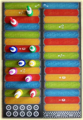 Schafft es ein Spieler, eine eigene Figur mit maximal acht Scheiben ins Ziel zu bringen, gibt es Siegpunkte entsprechend der Scheiben. Letztere wandern wieder in den Vorrat, und die Figur wird an den Start gestellt. Sobald ein Spieler eine von der Teilnehmerzahl abhängige Siegpunktzahl erreicht, endet das Spiel sofort.