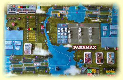Schiffe duch die Schleusen des Panamakanals schieben, Waren ein- und ausladen und damit Geld verdienen. Wer sich statt Schiffen Eisenbahnen vorstellt, denkt sofort an ein 18XX-Spiel, und wer eher an kleine Gummilastwagen auf einer Deutschlandkarte denkt, hat sofort Auf Achse vor Augen. Irgendwo dazwischen bewegt sich Panamax, wobei Spieldauer und Komplexität eher Richtung 18XX gehen.