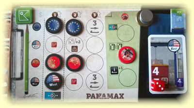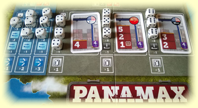 Spielerisch bringt Panamax keine umwerfenden Neuerungen: Für meinen Geschmack lehnt es sich entfernt an die Gruppe der 18XX-Spiele an (Unterscheidung zwischen Privat- und Company-Vermögen). Der Einsatz der Würfel zur Bestimmung der möglichen Aktionen, ohne dass Würfelglück im Spiel dann eine Rolle spielt, entspricht einem aktuellen Trend im Strategiespielbereich. Laden und transportieren von Containern war schließlich mit Auf Achse sogar schon mal Spiel des Jahres und ist ebenfalls bekannt.