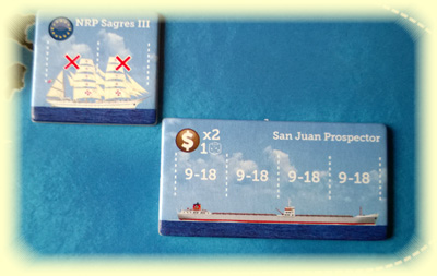 Habe ich eine Auftragskarte vollständig verladen, erhalte ich einen Chip derjenigen Nation, deren Auftrag ich erfüllt habe. Im Spiel wird zwischen vier Nationen mit jeweils eigenen Häfen unterschieden, wobei zwei im Pazifik und zwei im Atlantik jeweils nebeneinander liegen.
