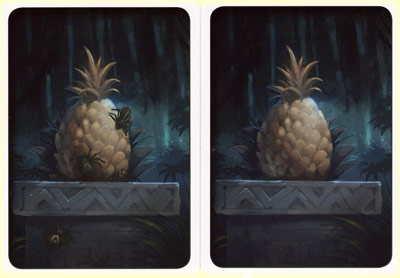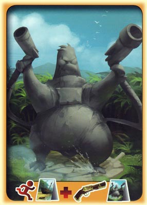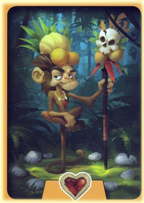 Zeigt die Karte einen Schatz, ein Lager oder den Affenzauberer, dürfen alle Spieler versuchen, zuerst auf die Karte zu schlagen. Der schnellste Spieler erhält die Karte oder bestimmte Rechte. So bekommt er beim Affenzauberer z. B. einen verlorenen Lebenspunkt zurück. Bei den Schatz- und Lagerkarten heißt es jedoch aufpassen: Erstens gibt es diese in einer Tages- und Nachtversion. Je nachdem, ob die CD gerade Nacht- oder Tagesgeräusche ertönen lässt, darf man auf die Karten schlagen oder eben nicht, falls die Karte nicht zur aktuellen Tageszeit passt. Schlägt man aus Versehen falsch, verliert man einen Lebenspunkt. Außerdem zeigen manche der Schatz- oder Lagerkarten Fallen in Form von Käfern, Spinnen, Schlangen oder Wächtern. Auch hier ist sofort ein Lebenspunkt weg, wenn man seine Finger nicht im Griff hat. Hat man all diese Hürden erfolgreich genommen, darf man den Schatz an sich nehmen – oder bei einem oder zwei Mitspielern insgesamt zwei Schatzkarten klauen, wenn man erfolgreich eine Lagerkarte erobert hat.