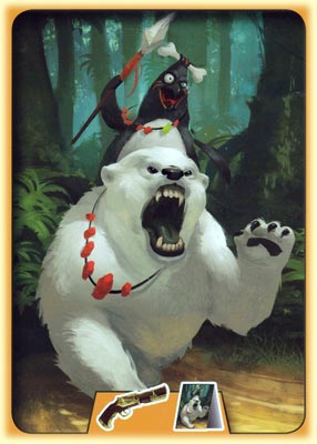 Außer diesen für alle gültigen Aktionskarten gibt es noch die Ereigniskarten, die (mit Ausnahme vom Affenzauberer) nur für den Spieler am Zug eine Bedeutung haben. Auch hier gilt: Man bezahlt mit Lebenspunkten, wenn man die gestellte Aufgabe nicht erfüllen kann. Neben dem Schießen auf den Bärenreiter oder den Weltall-Pinguin muss man auch mal von einem Hängebrückenaufsteller zum nächsten laufen und wieder rechtzeitig an seinen Platz zurückkehren, oder man muss alle bisher ausgespielten Karten gleichmäßig an die Mitspieler verteilen. Ob man bei diesen Aufgaben erfolgreich ist oder nicht, hängt immer davon ab, ob man sie erledigt, bevor von der CD ein Schrei ertönt.