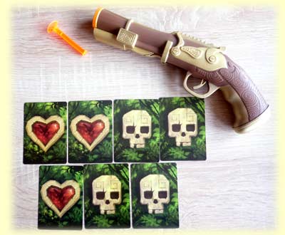Jeder Spieler legt seine sieben Lebenskarten offen vor sich aus. Die Karten zeigen auf der Rückseite jeweils einen Totenkopf, und sobald man einen Lebenspunkt verliert, wird die Karte einfach umgedreht. Alle restlichen Karten werden verdeckt gleichmäßig unter den Spielern ausgeteilt und als Stapel vor dem jeweiligen Spieler platziert. Nachdem die CD mit den Dschungelgeräuschen eingeschaltet wurde, geht das Spiel los. Die Spieler decken nun nacheinander möglichst rasch die oberste Karte ihres verdeckten Stapels in der Tischmitte auf. Auf die nun zu sehende Vorderseite können anschließend entweder alle Spieler oder nur der Spieler, der die Karte umgedreht hat, reagieren.