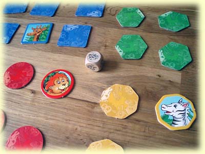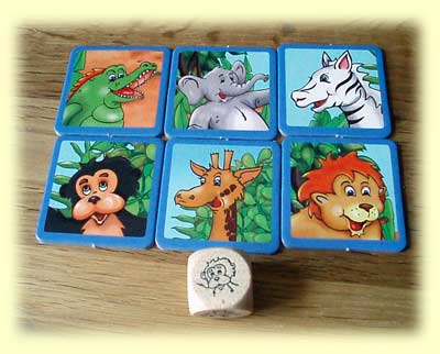 Dazu gibt es jeweils sechs Plättchen in den Farben Gelb, Grün, Blau und Rot; diese werden in farblichen Gruppen verdeckt ausgelegt. Reihum wird ein Tier gewürfelt, dass dann aufgedeckt werden muss. Klappt es, dann würfelt man sofort noch einmal und darf, jetzt allerdings nur bei einer anderen Farbe, ein weiteres Tier aufdecken. Klappt es nicht, wird alles wieder zugedeckt und der im Uhrzeigersinn nächste Spieler ist dran. Sobald man es schafft in jeder Farbe einmal das gewürfelte Tier aufzudecken, hat man gewonnen.