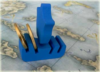Steht das Schiff eines Spielers nun auf einem Feld mit einer Gold-Dukate, deckt er sie auf und lädt sie anschließend auf sein Schiff. Jedes Schiff kann allerdings nicht mehr als 4 Dukaten transportieren. Hat das Schiff den Heimathafen erreicht, dürfen alle geladen Dukaten abgeladen werden.