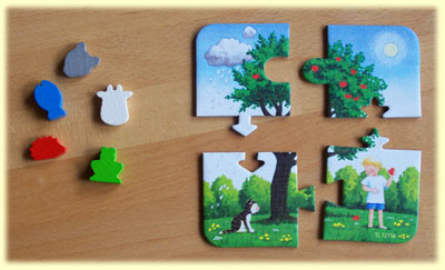 Bei vier Spielern dauert das Spiel relativ lange – für 4-Jährige meistens zu lange. Hier empfiehlt sich eine Verkürzung, indem man einfach das Spielziel auf drei oder vier unterschiedliche Tiere abändert. Dann sind auch die Kleinsten mit Feuereifer dabei.