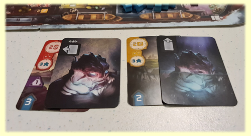 Material und Optik: Wir sind also mit Booten auf einem Fluss unterwegs. Um ehrlich zu sein. Das Design erinnert schon stark an Raumschiffe, weniger an Boote. Alles wirkt sehr nach Science Fiction. Die Ymunen sehen eher bedrohlich als Menschenfreundlich aus. Der Spielbereich ist halbwegs übersichtlich und vor allem variabel. Auch die Spielkarten selbst sind gut erkennbar. Den wirklichen optischen Mangel sehe ich bei den Zielplättchen für die Kooperations-Variante. Hier hatten wir es mehrfach, dass Phase 1 mit Phase 3 von Spielern verwechselt wurden. Wenn das nur 1 mal passiert wäre, dann kann das mal passieren. Wenn es jedoch mehrfach passiert und bei unterschiedlichen Spielern, dann möchte ich diesen Spielern nicht mehr anlasten. Man merkt den Fehler jedoch spätestens, wenn das erste Ziel aufgedeckt wird und unmöglich schaffbare Ziele zum Vorschein kommen. Hier wäre eine bessere optische Abgrenzung notwendig gewesen.