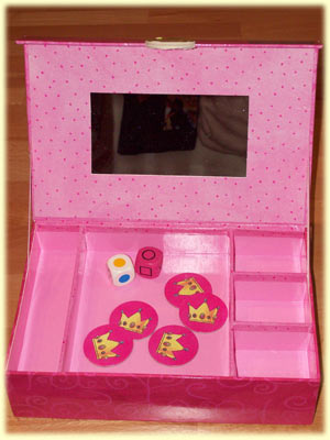 Zeigt ein Würfel den Spiegel, darf man sich im Spiegel der Schmucktruhe betrachten – dazu klappt man die diese auf. Auf diese Weise kann man nun sehen, welche Edelsteine an der eigenen Krone haften.