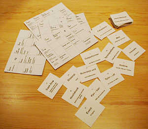 Das Material: Der eine nennt es spartanisch, ein anderer lieblos. In jedem Fall macht das Material nicht viel her. Einfaches bedrucktes Papier bzw. Karton mit dem Drucker bedruckt ohne grafische Ausschmückungen. Hinzu kommen noch kleine Rechtschreibfehler.