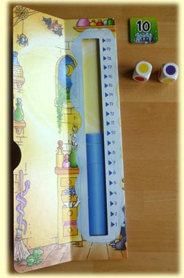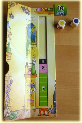 Die beiden anderen Spielmöglichkeiten sind recht ähnlich, wobei eine als Solospiel ausgelegt ist und die andere als Reaktionsspiel für drei Spieler, bei der ein Spieler durch eine Kombination von Zutatenstreifen vorgibt, nach welcher offen ausliegenden Zahl gesucht wird. In dieser Variante herrscht deutlich mehr Wettbewerbsdruck, denn nur einer kann gewinnen, während in der Grundvariante (fast) alle Kinder ein Erfolgserlebnis verbuchen können, sofern sie richtig gerechnet hatten, indem sie ihre Hexensteine bewegen dürfen, wenn auch unterschiedlich weit. Fast deshalb, weil im Spiel zu viert der letzte Spieler nur vorrücken darf, wenn sich einer der Vorgänger verrechnet hatte – ansonsten bleibt auch in der Grundvariante sein Hexenstein stehen.