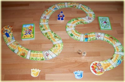 Auf diese Weise wurde nämlich gleichzeitig noch das dritte Problem des Spieles gelöst: nämlich die Spieldauer. Zwar steht auf der Spielbox, für ein Spiel würde man etwa 15 bis 25 Minuten benötigen, jedoch konnten wir diese Zeit in keinem unserer Testspiele einhalten. Im Spiel zu zweit kann man es – abhängig davon, ob die Kinder hohe oder niedrige Zahlen würfeln – mit etwas Glück in 30 Minuten schaffen. Spielen jedoch mehr Kinder mit, rückt diese Zeitangabe in weite Ferne. Grundsätzlich macht den Kindern dieses Spiel zwar Spaß, jedoch nicht länger als etwa 20 Minuten. Dann wird es langweilig und Unruhe macht sich bemerkbar. Spielt man dann mit der Variante, dass jeder Spieler vorwärts kommt, rückt man diesem Zeitoptimum wieder etwas näher.