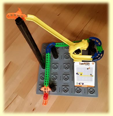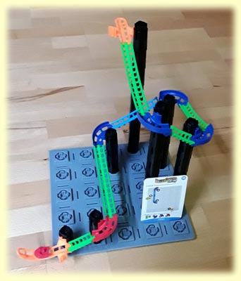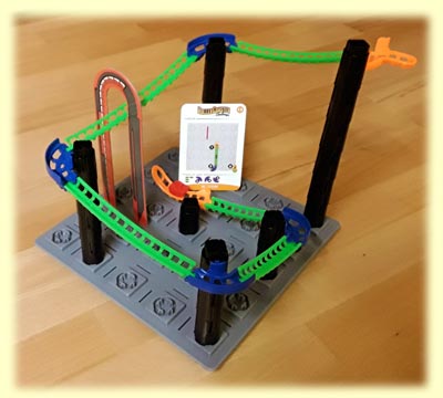 Aus wie vielen Teilen die Achterbahn erstellt werden soll, gibt die Anleitung vor. Ein Teil der Achterbahn wird schon aufgebaut, der Rest muss mit jenen Teilen angefertigt werden, die ebenfalls auf der Aufgabenkarte angegeben sind. Dabei ist die Anzahl der Pfosten- und Streckenteile (gerade und kurvige) für den Schwierigkeitsgrad verantwortlich. Außerdem zeigen die Verbindungsstücke durch ihre Farbe an, wie hoch der Höhenunterschied von einer Säule zur nächsten sein wird. Wie bei einer echten Achterbahn auch, gibt es Sturzfahrten, Loopings oder gemütliche Abschnitte mit wenig Gefälle.