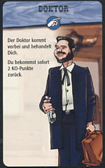 Alternativ zu den Angriffskarten kann man auch Ereigniskarten spielen, welche einem helfen K.O.-Punkte wieder zu erlangen.