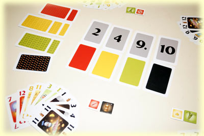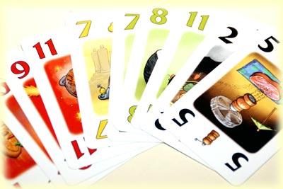 Die nicht ausgeteilten Karten werden übrigens - sorgfältig nach ihren Kartenrückseiten sortiert - in die Tischmitte gelegt, sie bilden den sogenannten "Gewürzschrank". Auch dieser muss berücksichtigt werden, denn jedes Mal, wenn ein Spieler einen Stich erobert, muss er eine beliebige Karte des Gewürzschranks dazu nehmen.