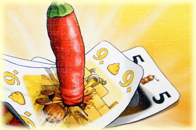 Aber wenigsten sind alle diese Gewürze scharf, zum Teil sogar richtig "heiß". Und diese Eigenschaft soll wohl darauf hinweisen, dass es sich bei besagtem Spiel um ein besonders pikantes Kartenspiel handelt.