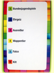 Die Begriffauswahl ist vielfältig, jedoch vom Schwierigkeitsgrad unterschiedlich. Es haben sich auch einige Person, lebende und tote, in die Begriffe geschmuggelt, die nur von eingefleischten Lesern der Regenbogenpresse oder Klatsch- und Tratschtanten enttarnt werden. Da fällt dann sowohl das Fallenstellen als auch das Erklären schwer. Bei 1.320 Begriffen ist jedoch ein Ersatz schnell gefunden.