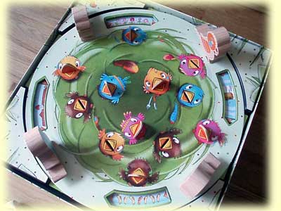 Schon beim Öffnen der Schachtel ist die Begeisterung groß - besonders über die schönen großen Holzvögelchen, die zu piepsen scheinen: "Nimm mich in die Hand!" Und gerade das tun die Kleinen ausgiebig, bevor sie "richtig" losspielen, denn es macht schon Spaß, ein bisschen ohne Regeln "herumzuflattern".