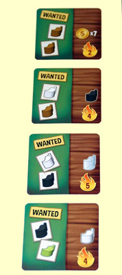 Alle Plättchen, sogar die Sichtschirme, sind richtig schön stabil. Der Spielplan - aus produktionstechnischen Gründen nicht zum Auseinanderfalten, sondern zum Zusammenpuzzeln - weist sogar Aussparungen auf, damit die darin platzierten Schoten nicht verrutschen können, einfach vorbildlich. Die grafische Gestaltung ist im Comic-Stil gehalten. Zusammen mit einer gelungenen, fast selbsterklärenden Symbolik ist eine gute Übersicht gewährleistet. Lediglich die Pappmünzen sind etwas fuzzelig, vor allem die winzigen 1 $ - Münzen.