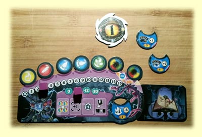 Zusätzlich enthält die Erweiterung noch zwei Gimmicks, die man bereits als Bestandteil des Grundspiels erwartet hätte: einen Startspielermarker sowie zwei Papptafeln "Verzaubertes Grimoire". Der Startspielermarker ist leider bei den vielen Karten und Markern auf dem Tisch viel zu unscheinbar, als dass er auffällt. Wenn man so einen Marker schon in einer Erweiterung nachliefert, hätte man sich ruhig für eine Spielfigur entscheiden können.