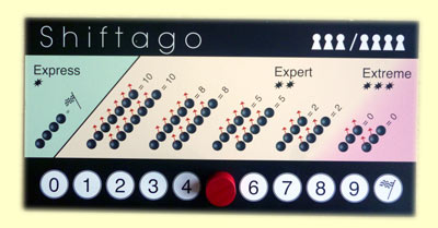 Shiftago Extreme (die dritte Variante) unterscheidet sich im Vergleich zur zweiten (Shiftago Expert) nur darin, dass man bereits Reihen mit drei Kugeln werten muss, dafür aber 0 Punkte erhält.