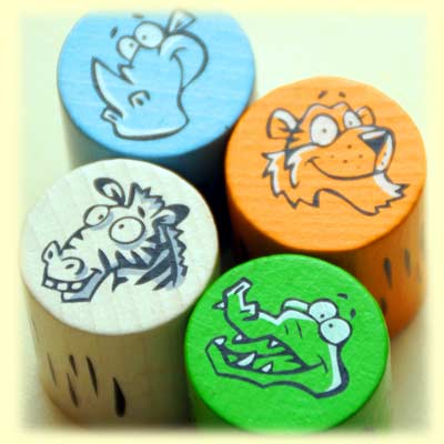 Jedes Kind übernimmt eine Tierart, von der es je zwei Figuren gibt: Nashörner, Zebras, Krokodile und sogar Tiger, wahrscheinlich Austauschstudenten aus Indien. Die Kinder stellen ihre Tiere auf die Fußmatten vor den Hütten. Nur für ein einziges Tier findet sich kein Platz vor einer Hütte. Durch das Drücken des Bongo-Buzzers wird eine Runde gestartet.
