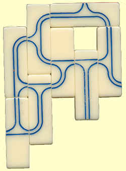 01.04.04 von Severin - Um den Glücksfaktor etwas herauszunehmen, empfiehlt es sich auch, sich den Nachziehstapel genau anzusehen. Dort sind die einzelnen "Ausgänge" der Leitungen an den Rändern der Steine zu erkennen. So kann man ein wenig spekulieren, wie der nächste Stein aussehen wird. |