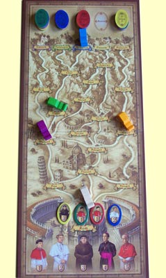 Jedes Mal, wenn nun beim Abschluss einer Strecke in einer Stadt keine Poststation gebaut werden darf, muss die Kutsche der entsprechenden Region (oder eine beliebige andere, falls die entsprechende Kutsche schon in Rom angekommen ist) weiter nach Süden fahren. Dabei kann sie aber durchaus auch mal Umwege in Kauf nehmen. Erreicht eine Kutsche Rom, so steigen alle Geistlichen darin aus und verdrängen alle bisherigen Geistlichen derselben Wertigkeit. Am Ende des Spiels erhalten alle Spieler die Siegpunkte für Ihre Geistlichen, die jetzt noch in Rom sind.