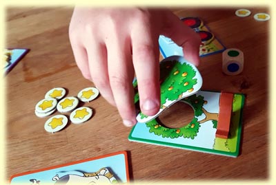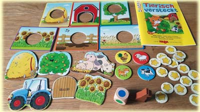 Tierisch versteckt setzt das Lieblingsspiel Verstecken von kleinen Kindern sehr gelungen in Brettspielform um, so dass es problemlos mit Dreijährigen gespielt werden kann.
