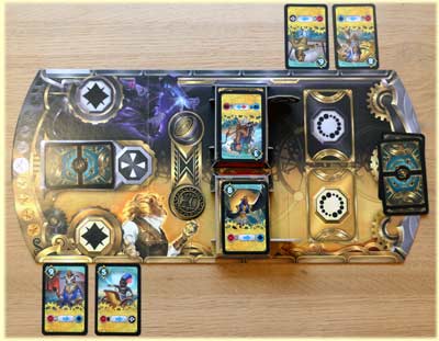 Die Spielregel ist gut erklärt, auch wenn ich persönlich die Art und Weise der Ansprache etwas oberlehrerhaft finde. Die Begrifflichkeiten, die verwendet werden, machen das Ganze etwas aufgeblasen und geben allem einen bombastischen Touch. Da wird ein simpler Ablagestapel zur "Vergangenheit", die persönliche Kartenauslage zum "Einflussbereich" etc.