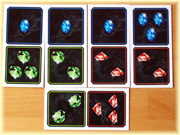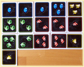Reihum legt jeder Spieler eine seiner drei Handkarten waagrecht oder senkrecht an eine bzw. mehrere Karten der Auslage an. Dabei sollte man versuchen, mit den auf der Karte abgebildeten Edelsteinen möglichst viele Punkte zu erzielen. Alle an die neu gelegte Karte angrenzenden gleichfarbigen Edelsteine in derselben Reihe werden addiert. Ideal ist es dabei, die Zahl 7 zu erreichen, da sie die höchste erlaubte Gesamtzahl einer Reihe darstellt. Würden in einer Reihe mehr als sieben gleichfarbige Edelsteine zusammen kommen, darf man die Karte nicht an diese Stelle legen. Grenzt die Karte mit ihren beiden Edelsteinfeldern an mehrere bereits liegende gleichfarbige Edelsteine, so werden die Summen addiert. Nachdem dem Ablegen zieht man genau eine Karte nach, so dass man wieder drei auf der Hand hält. Nach genau sieben Runden endet das Spiel und es gewinnt natürlich jener Spieler, der die meisten Punkte erzielen konnte.