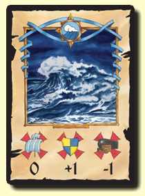 Etwas verwundert hat mich, dass manche Handelsschiffe in einigen Kategorien einen Wert von „8“ vorgeben. Da die Werte auf den Handelsschiffen mittels der Meereskarten maximal um 1 reduziert werden können, wäre das niedrigstmögliche Resultat eine 7 – immer noch 1 höher als der höchste Wert der Piratenschiffkarten. Da ein Piratenschiff zum Erfolg in der vorgegebenen Kategorie immer einen höheren Wert als das Handelsschiff haben muss, hätte auf den Handelschiffen auch eine 7 als höchster vergebener Wert gereicht, um manche Schiffe in einigen Kategorien unbesiegbar zu machen. Wegen dieses Punktes habe ich etwas an mir selbst gezweifelt, aber trotz mehrmaliger Regellektüre (auch der englischen Fassung) keine mir einleuchtende Erklärung finden können.