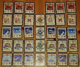 Die übrigen Kartenarten werden jeweils für sich gemischt und jeder Spieler erhält je 3 Handelsschiff-, Schatz-, Meeres- und Strategiekarten sowie eine Ereigniskarte.