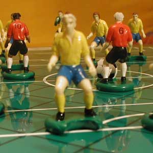 Das Spiel: Hat man sich einmal erfolgreich die eigentlich unterm Strich nicht all zu komplizierten Regeln erarbeitet, erwartet die Spieler ein hochtaktisches Zweipersonenspiel, das mit Ausnahme des Elfmeters und dem Überkopfpass keinerlei Glückselemente enthält.