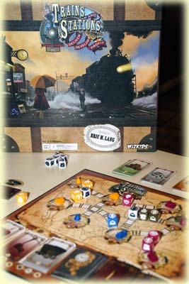 Selten verrät uns ein Spieletitel deutlicher und unmissverständlicher, um was es im entsprechenden Spiel geht, als hier beim neuesten Spiel von WizK!ds. Wir müssen Zugverbindungen herstellen und Bahnhöfe errichten. Folgerichtig heißt das Spiel Trains and Stations. Und damit auch die allerletzten Zweifel beseitigt werden, warum wir dies alles anstellen sollen, schiebt der Verlag im Untertitel noch drei Verben nach: "Deliver, develop, profit". Eine dankbare Aufgabe für mich als Rezensenten, erspare ich mir doch auf diese Weise die aufwändige Formulierung des Spielziels. ;-)