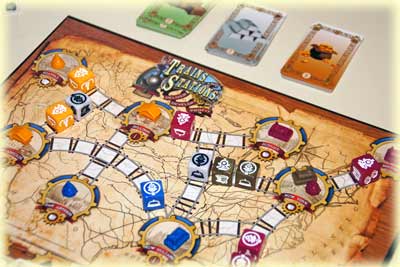 Bleiben noch drei Würfelseiten übrig. Für jeden Würfel mit Dollar-Symbolen darf sich der Spieler zwei Münzen vom Vorrat nehmen. Besonders wichtig im Hinblick auf den Streckenbau sind jedoch die "Zug"-Symbole, die gleich auf zwei Seiten jedes Würfels vorkommen. Alle Zug-Würfel müssen nach dem Würfeln auf Streckenfelder gelegt werden, entweder direkt neben Städten oder zur Erweiterung einer Strecke neben einem bereits gelegten Zug-Würfel, egal welcher Farbe.