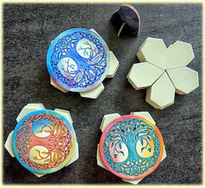 Das Symbol für die Verbindung von drei Dingen ist der Knoten der Dreisamkeit - die Triqueta. Im Legespiel Triqueta symbolisieren Tiersteine, die jeweils zu dritt zusammen gelegt werden müssen, diesen Knoten. Wichtig ist, dass für jede der sechs Tierarten nur eine Triqueta gelegt werden darf. Gibt es weitere Steine der gleichen Tierart, gibt es Minuspunkte. Wer es schafft, möglichst vollständige Triquetas zu legen und dabei keine überschüssigen Tiere hat, gewinnt die Partie.
