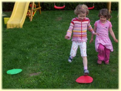 Neben einigen Testspielen mit den eigenen Kindern sowie im Kindergarten hatte ich das Spiel auch während eines Campingwochenendes mit vielen Kindern (Alter zwischen 4 und 10) dabei. Immer wieder wurden die Matten ausgepackt und damit gespielt. Und zu den drei vorgeschlagenen Regeln dachten sich die Kinder auch eigene Spielvarianten aus. Einige Male vergrößerte sich die Teilnehmerzahl auch auf wundersame Weise, denn andere Kinder, die interessiert dabei zuschauten, was mit den bunten Matten gespielt wird, wollten auch mitmachen.