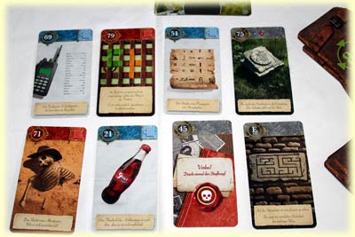 Auch Unlock! bedient sich des Kniffs, die Hinweise so gut zu verstecken, dass sie nicht so ohne weiteres gefunden werden können. Es empfiehlt sich daher, die Karten wirklich ganz genau anzuschauen. Für Menschen meines (fortgeschrittenen) Alters bedeutet dies, dass man ohne ausreichend gute Beleuchtung und geeignete Sehhilfe kaum eine Chance hat, kleinste Zahlen und Buchstaben zu erkennen. Aber man spielt ja ohnehin meist kooperativ in einer Gruppe, sodass ich mir angewöhnt habe, das Entziffern winziger Details den jüngeren Mitspielern zu überlassen.