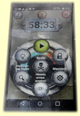 Einige Karten verlangen die Eingabe eines 4-stelligen Codes auf dem Handy. Auch hier werden Erfolg und Misserfolg entsprechend belohnt (mit neuen Hinweisen) bzw. bestraft (ein paar Minuten Verlust). Diese Codes - meistens öffnet man damit verschlossene Türen - sind wichtig für den Fortschritt des Abenteuers. Haben wir vor Ablauf der Zeit den letzten Code richtig geknackt, haben wir das Abenteuer gemeistert und konnten rechtzeitig entkommen.