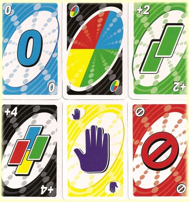Neben den altbekannten UNO-Karten Aussetzen, Farbenwahl, ziehe 2 Karten und ziehe 4 Karten mit Farbenwahl gibt es eine neue Karte, nämlich die Hau-drauf-Karte. Jener Spieler, der diese Karte spielt, drückt unmittelbar danach die dazugehörige Taste auf der Spieleinheit. Nun müssen alle Spieler so schnell wie möglich ihre eigene Taste drücken. Der Langsamste bekommt 2 Strafkarten.