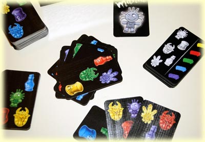 Und? Fällt dem aufmerksamen Leser etwas auf? Richtig: Jede Karte zeigt auf jeder Seite lediglich 4 Zutaten, obwohl es doch 5 unterschiedliche gibt! Darin besteht auch schon die Aufgabe der Spieler: Die fehlende Zutat in der fehlenden Farbe der obersten Karte des Ablagestapels zu bestimmen, auf den eigenen Handkarten zu suchen (vorne und hinten) und die entsprechende Karte schnell auf den Ablagestapel zu legen. Auf dieser neuen Karte fehlt wiederum eine bestimmte Zutat, welche ebenfalls wieder gesucht und abgelegt werden will, usw.